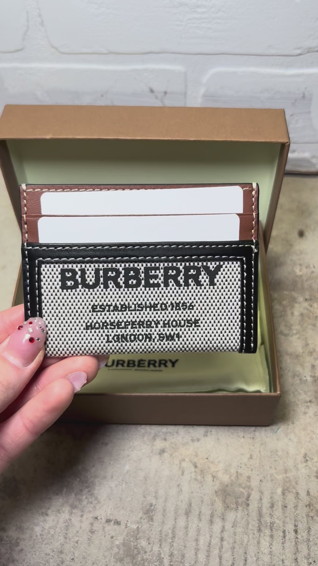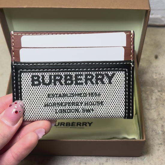 Burberry Horseferry print canvas and leather card case in black and tan.