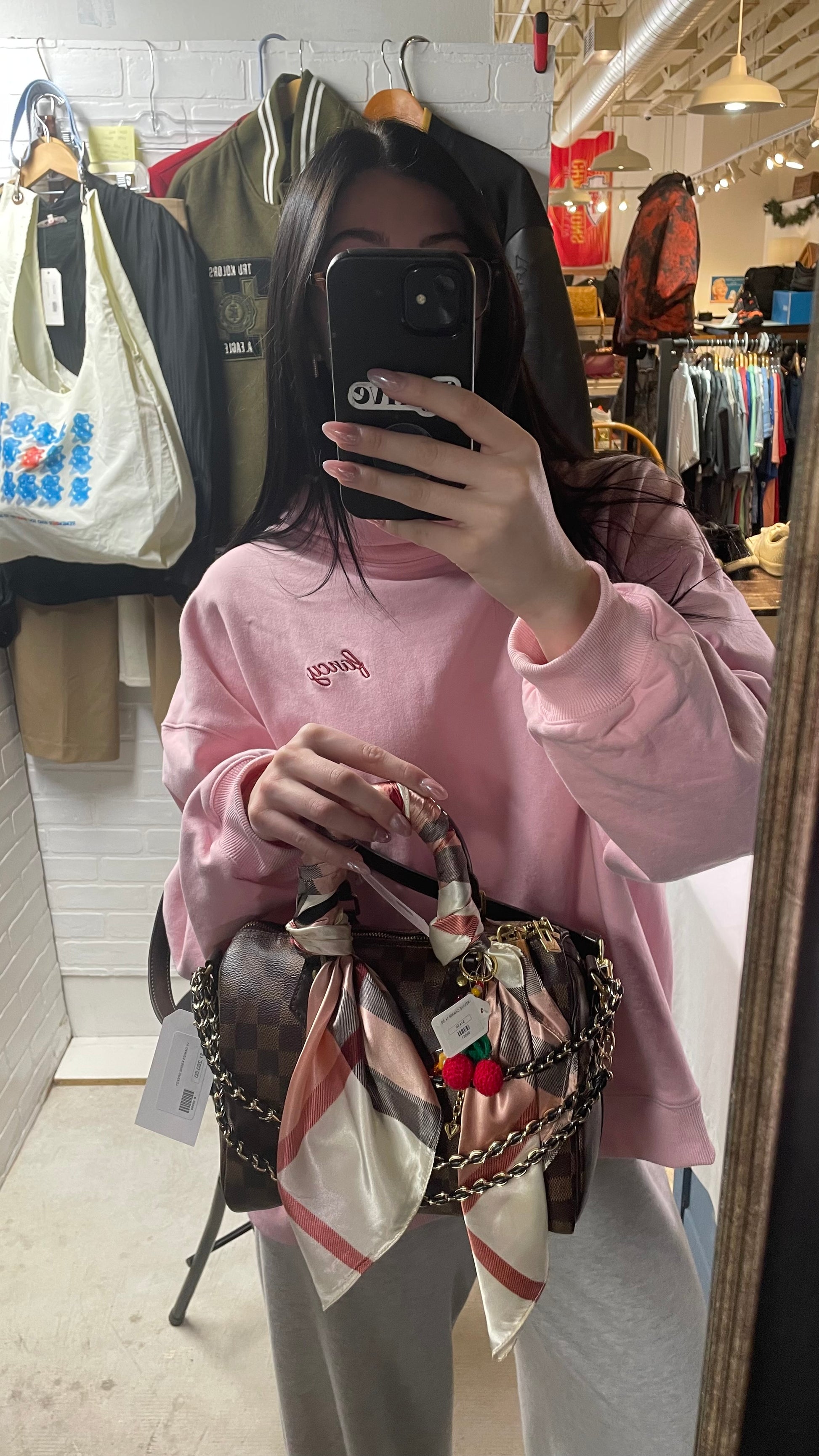 Designer-Style Purse Charm Bundle – Satin Scarf, Gold Chain Strap & Cherry Bag Charm
