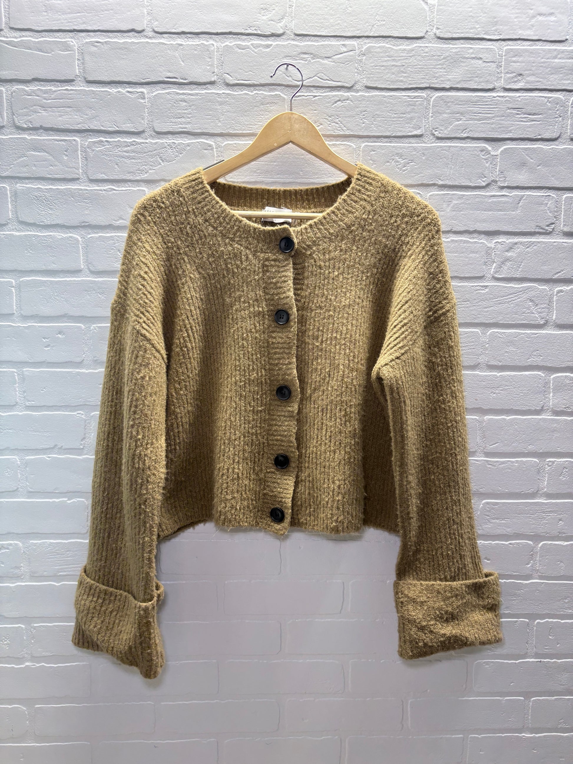 Dress Forum Cropped Knit Cardigan – Tan | Size Large
