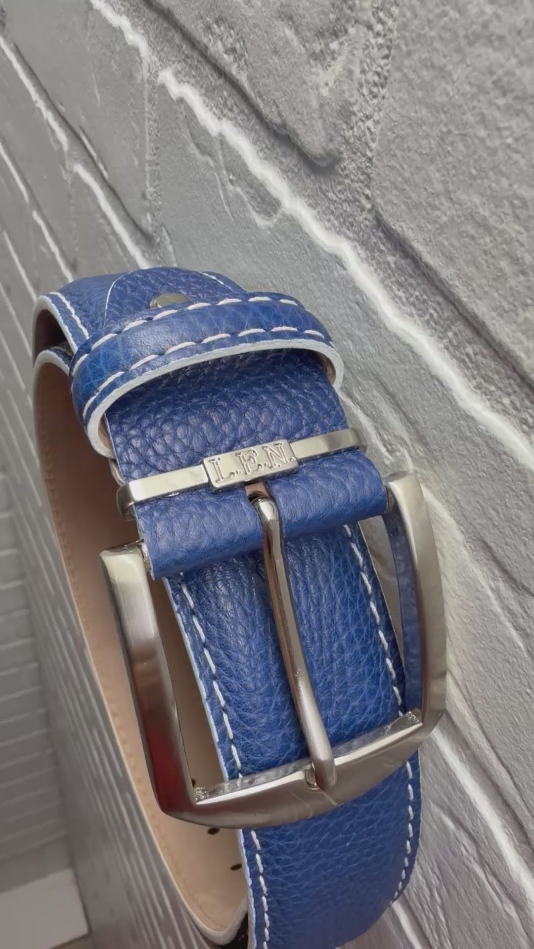 - Color: Navy or "new blue" leather with a contrasting white border stitch and white edge.