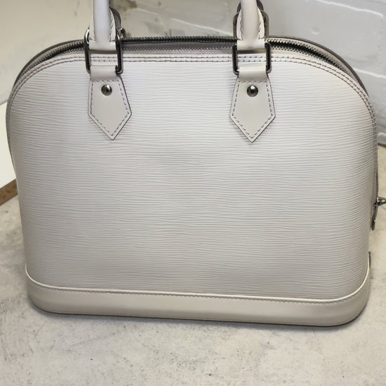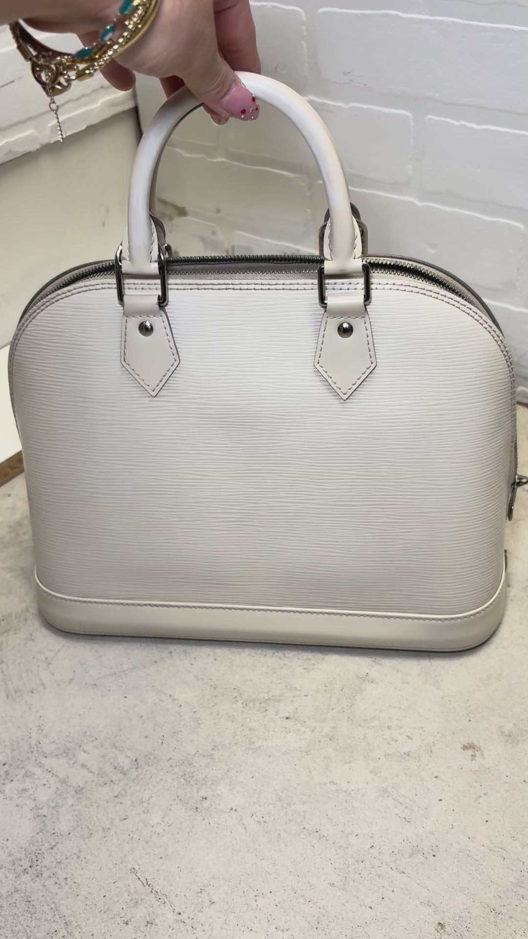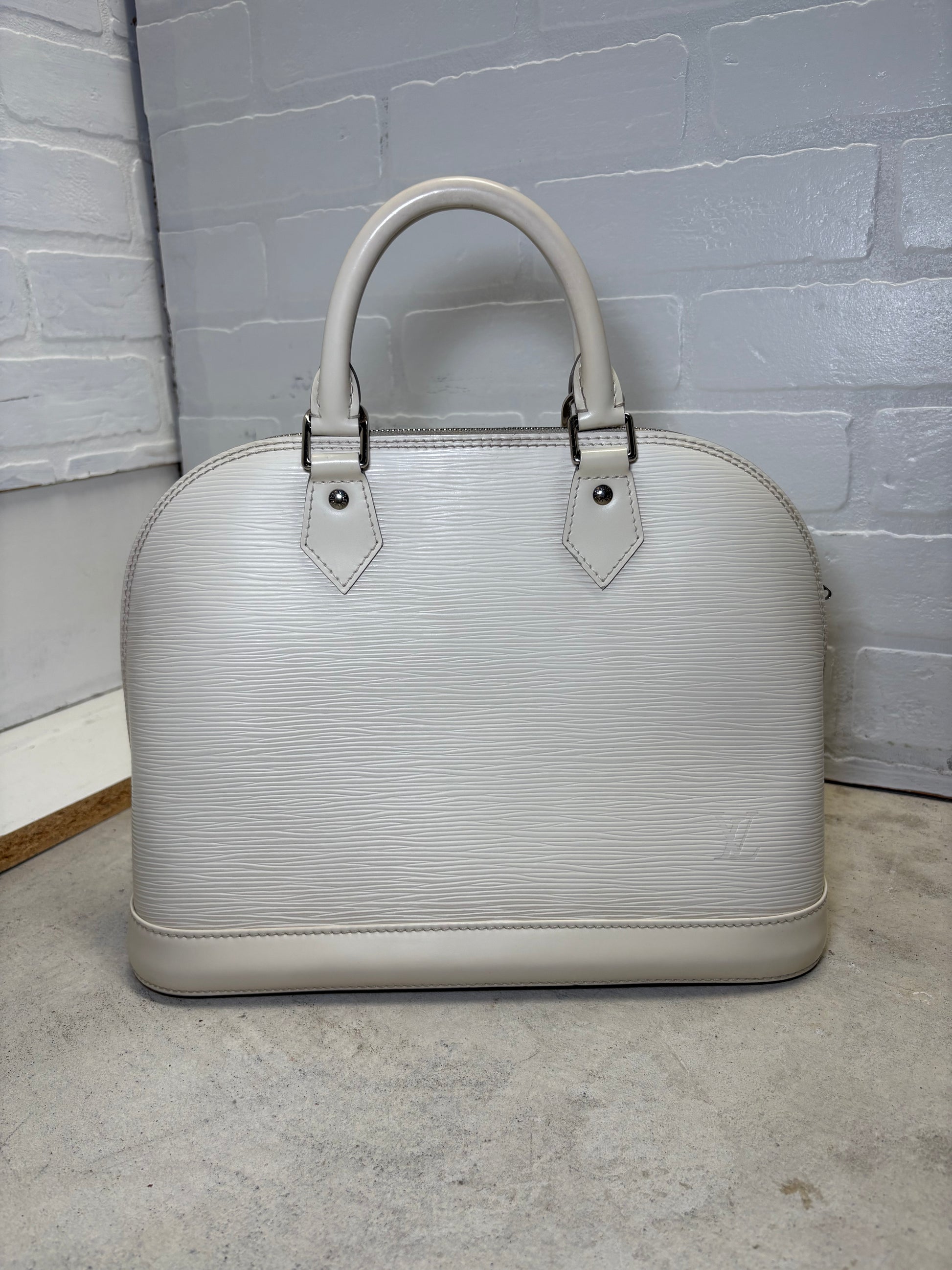 Pristine condition Louis Vuitton Epi Alma PM bag in white leather.