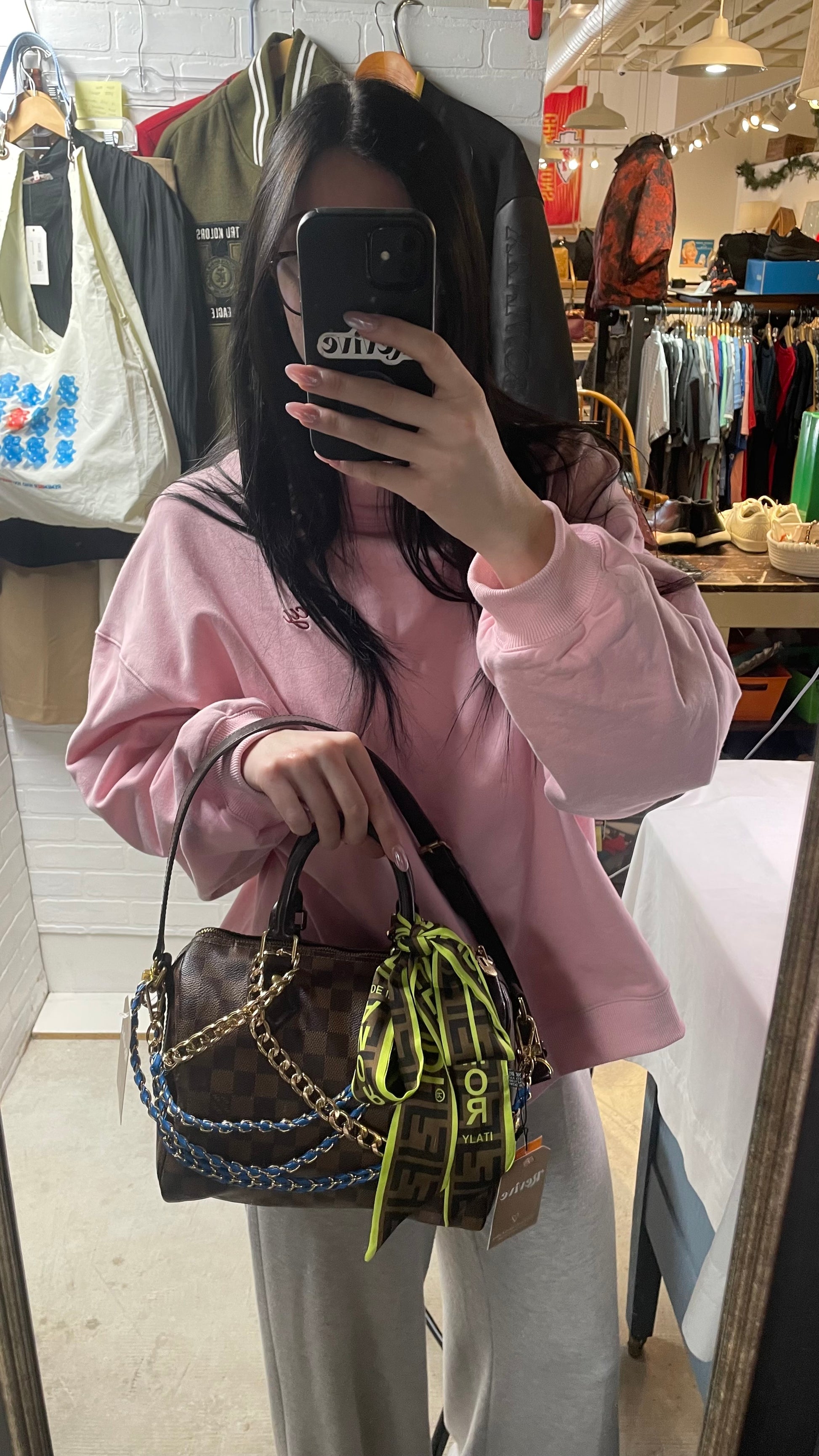 Luxury Purse Charm Bundle – Gold Chain Strap, Blue Chain Strap & Monogram Satin Scarf