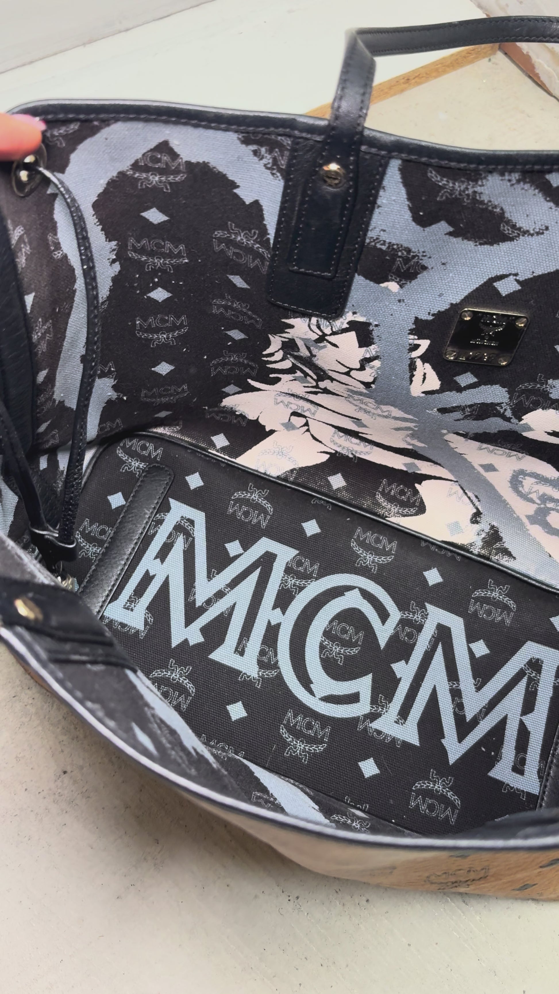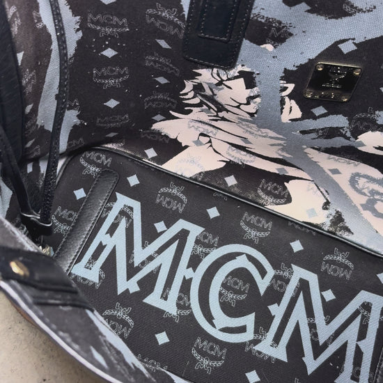 MCM Visetos Monogram Princess Lion Snakeskin Stripe Shoulder Bag Tote