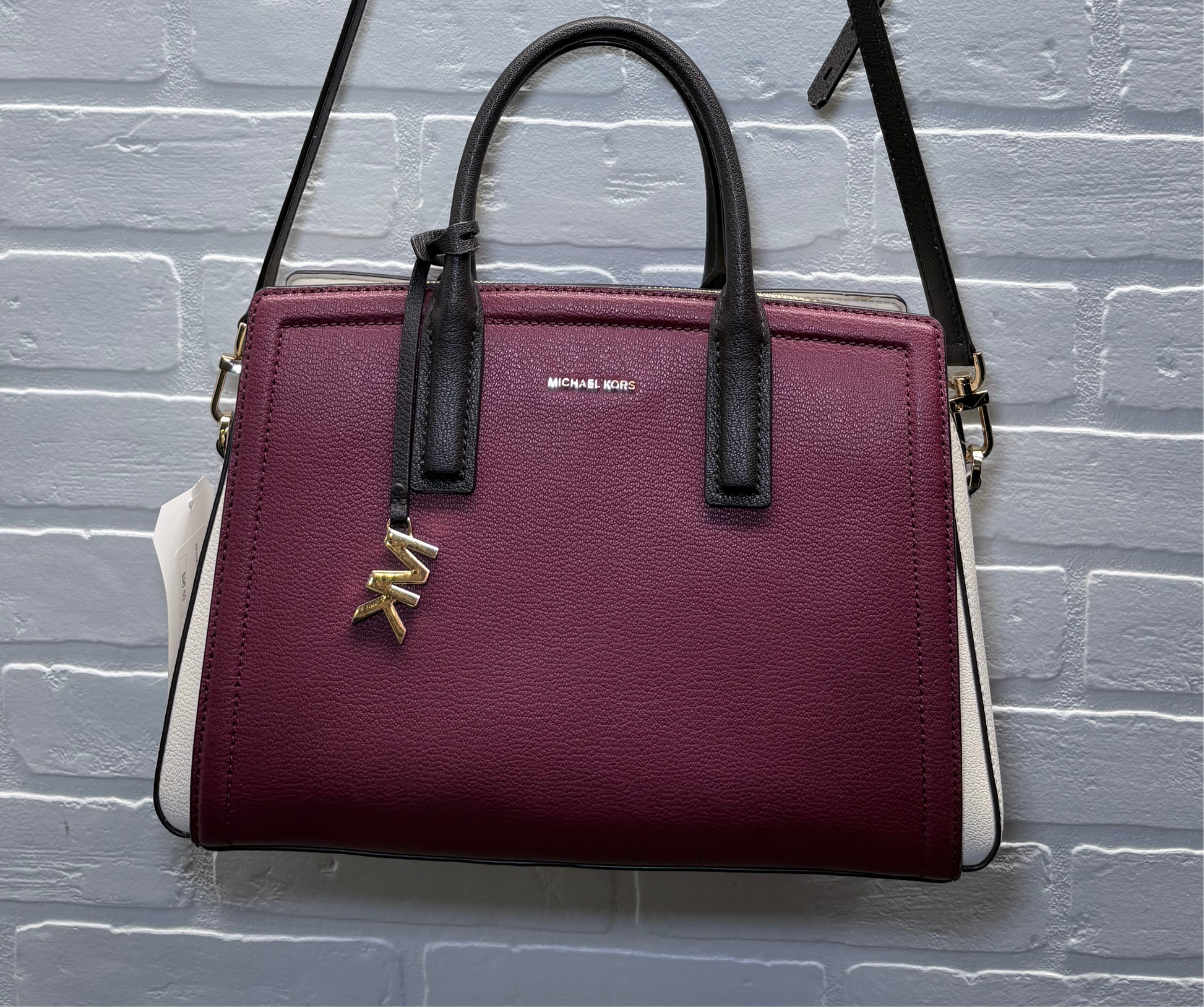Michael Kors Colorblock Leather Satchel Crossbody Bag – Burgundy, Black & Cream