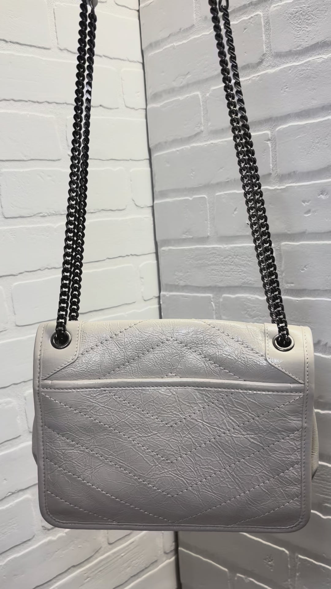 Saint Laurent Niki Baby Shoulder Bag in vintage-effect leather.