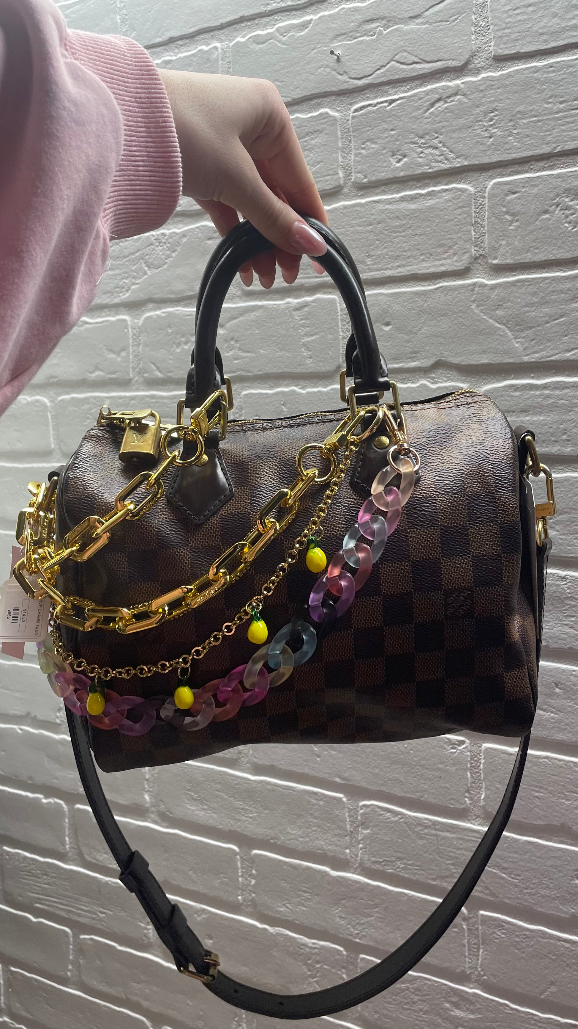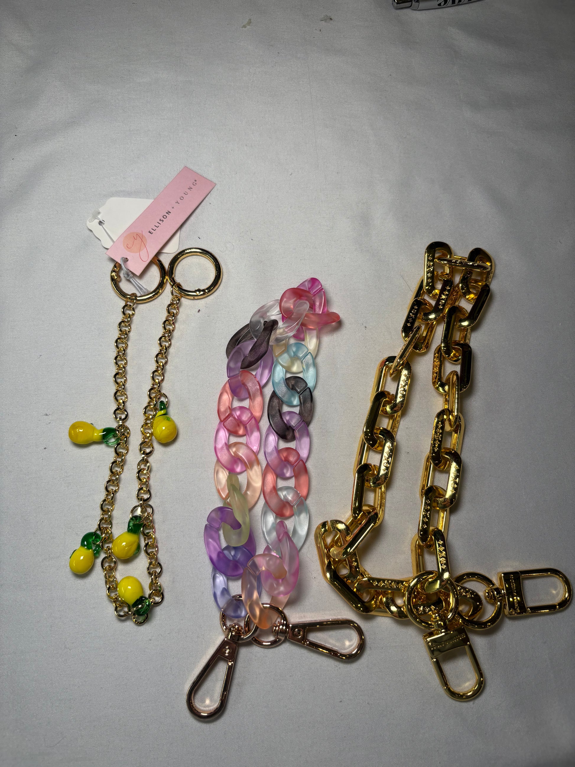 Statement Purse Charm Bundle – Gold Chain Strap, Pastel Acrylic Chain & Lemon Charm